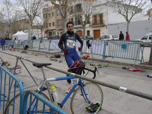 3- Otra sorpresa en el calendario fue este Duatlon de Inca (y otros dos que se avecinan en LLubí y S'Arracó). Este es el punto de partida para dar el cayo el 6 de diciembre en Sa Pobla junto a Ruben para desquitarme del desastre del año pasado. Total que me presento en Inca con Jose y nos encontramos con toa la tropa de @tletasdebaleares; Berto, Baroroig, Manuel, Irontambor, Buitracus (que no corrió pero que hizo de corresponsal audiovisual) y perdón si me dejo alguno. El tema es que la semana anterior habia vendido al "hueso" la btt Qüer que tenia y me compré una Orbea de segunda mano con muy buena pinta a la que llamaremos "La joven promesa". Total que dando la vuelta de reconociemiento al circuito se me parte la cadena!! Tócatelos!!! Por un pelo no llego a tiempo para la salida si no es por el tito Berto (uno de mis mecanicos oficiales) haciendo lo que podía con el llamado "tronchacadenas" eres el amo!! Pero tube que hacer toda carrera con el plato medio, no pasa nada pero dos veces lueché con la cadena para ponerla en su sitio, cagon to!! las cadenas me tienen frito. La carrera no fue mal, me sentí un poco flojucho pero este es el punto de partida. Jose también regulín ya que llevaba arrastrando un dolor en la espalda que no acababa de sanar. Aunque me contó una historia antes de la salida de que iría a mi ritmo y tal... al parecido a un relato que también me contó antes del triatlon de Palma cuando nació Guillermito... SATANÁS!!!!
